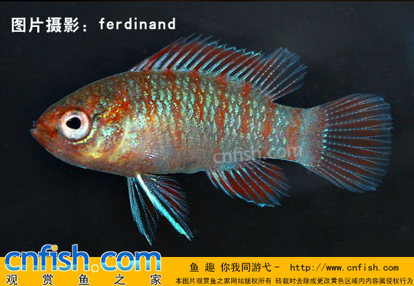 火焰变色龙属于Nandidae科的新发现鱼种,大约在1999年出现在亚洲水族市场上。同科鱼种还产于泰国、马来西亚等地,该鱼在原产地被称为“红宝石”。 目前,饲养在水族箱中的火焰变色龙大多数都是东南亚地区人工繁殖的种类,其体型娇小,成熟以后的体色基色为金属蓝色,鱼鳍、身体分别分布有猩红色竖条纹。其体型以及色彩搭配显得更为十分美丽。