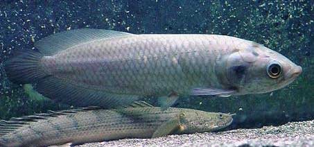 分布在非洲尼罗河流域的中、上游及非洲一带,非洲龙的外型与东南亚、澳洲、南美洲的龙鱼有些相似,最大不同点是:头部至背鳍不是呈水平状,而是有弧度,没有胡须,且尾鳍较小,没有亮丽的鳞片,颜色为橄榄色带些灰色。此鱼吃食方面,专吃水中浮游生物或小虾小虫,没有牙齿,靠舌头替代,成鱼可长至1公尺左右,重达6公斤,卵径约1公分。此鱼擅于跳跃,故饲养时水族箱应加覆玻璃,以免跃出。根据在非洲发现的龙鱼祇有一种,主要产区是在非洲北部尼罗河流域,及西非洲一带。非洲龙的体型与东南亚、澳洲,南美洲的龙鱼不太相似,它的体型较为扁圆,头粗厚。颜色为咖啡色带些黑,但它的颜色也会因环境的不同,而改变为浅黄色或米色;嘴小而且厚,吻端没有胡须,胸鳍与腹鳍同样大小,尾鳍小呈圆形,腹鳍有6支梗骨;鳞片很小而且不亮丽;侧线有32~38鳞片,从鳃部超有一排鳞片带斑点,直到尾部。此鱼吃食特性与一般龙鱼不同,因地没有牙齿,杂食性,如水草、水蚤、小虫、小鱼。吃食亦可由鳃部进食即由鳃部作过滤,经由分泌粘液吸附微生物或浮游生物送入背中,为其奇特之处,非洲龙如未经介绍,读者很难知道,它竟是龙鱼的一种。它在繁殖期间,会找寻圆形枯木或树枝水草筑巢,大小约4尺平方,卵径约0.25公分,孵化时间约二天,由雌雄二鱼一起照顾。非洲龙在东南亚市场上,不太为龙迷所接受,但一些龙迷对搜集不同种类龙鱼,也很有兴趣,此鱼亦有惊人跳跃力;故饲养时,须特别注意于水族箱上加盖。