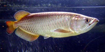 澳洲斑纹龙鱼体长可达50公分,产于澳大利亚东部,和星点斑纹龙很相似,幼鱼极为美丽,头部较小,体侧有许多红色的星状斑点,臀鳍、背鳍、尾鳍有金黄色的星点斑纹,成鱼体色为银色中带美丽的黄色,背鳍为橄榄青,腹部有银色光泽。各鳍都带有黑边。