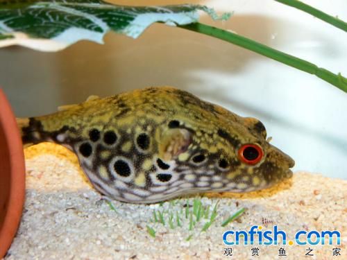 行动: 很安静的一只淡水河豚活动力不强,几乎一整天都待在缸底