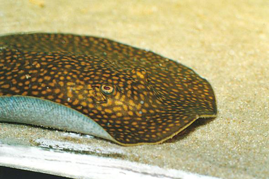 中文名:泰鲁魟 英文名:Stingray 学名:Potamotrygon falkneri 产地:巴西 水质:pH6.0-7.5 水温:22-26℃ 体盘长度:40cm
