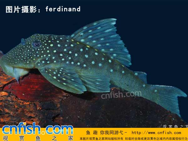 紫钻,异型编号L128,它的体色在异型中可谓是最有特色的了,跟着底砂,环境的不同,它的体色会呈现从墨绿色,宝蓝色到紫色.我饲养的两只紫钻,体色就有着不同,从第三张图片,大家就可以看到,一只是墨绿色,另一只则是紫色.它虽然是大家很发现很早的鱼种,可是它在生物学上的身份,却一直被争论,一直没有为它定属.一直到去年,才为它确定了属别.紫钻最新的身份,被归在了Hemiancistrus属下.和它同属的,还有金钻,也是刚被确认了生物学身分的,金钻,学名是Hemiancistrus subviridis,也是在2005年刚被定了种名.紫钻和金钻的区别一个是看体色,另一个则是看身上的斑点,紫钻身上的斑点可以布满全身,而金钻的斑点则只有在头部附近.紫钻和金钻都是很温和的鱼种,虽然它们的体型比较大,成鱼可以达到25CM.但是还是不适合和坦克,皇冠豹之类的大块头混养,以免成为弱势鱼种.