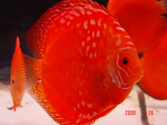 万宝路七彩神仙是由泰国的林亚头先生用鸽子红七彩神仙与棕五彩神仙繁殖 出来的。万宝路七彩神仙以其耀眼的色彩,血红的眼睛风靡世界各地。