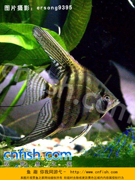 原产地南美洲亚马逊河,属慈鲷科。体长10-15CM,体呈圆盘形侧扁。头尖,腹鳍是两条长长的丝鳍,体侧3-5条黑色垂直横带,似斑马条纹而得名。饲养水温22-26摄氏度,水质微弱酸性软水,饵料以虫鱼为主。繁殖水温26-28摄氏度,亲鱼性成熟6个月,雄鱼个体较大,头顶呈圆弧形微微隆起,各鳍较长。雌鱼头顶平滑,磁板卵生,每次产卵300-500