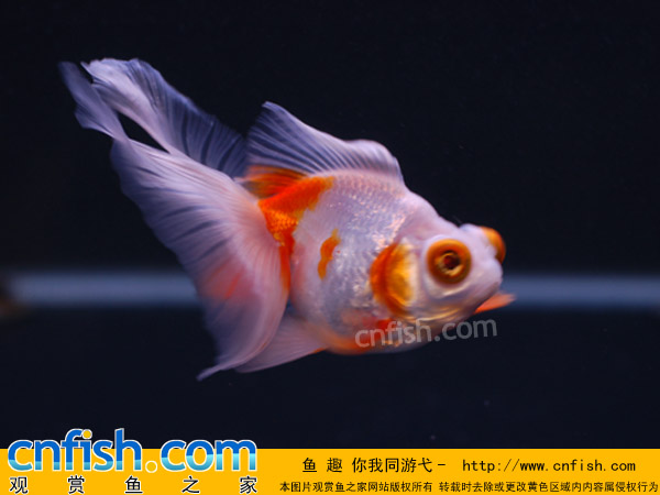 6、蝶尾金鱼尾部开叉不宜太大,一般开叉为一条直线最好,但尾叶不能相磨,开叉角度最好不要超过15度,我的这尾金鱼就有些偏大了;
