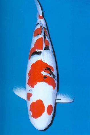 白底上有红色及黑色斑纹者称为“大正三色”。头部只有红斑而无黑斑,胸鳍上有黑色条纹者为基本条件。与红白同为锦鲤的代表品种。