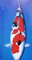 白底上有红色及黑色斑纹者称为“大正三色”。头部只有红斑而无黑斑,胸鳍上有黑色条纹者为基本条件。与红白同为锦鲤的代表品种。