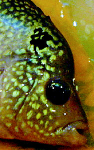 记者在数码相机上看到,这条长字的罗汉鱼全身都是银灰色,但在头部两侧离眼睛较近的地方有部分鱼鳞呈现明显的黑色,仔细一看,这些黑色鱼鳞在头部一侧组成了一个“绝”字,另一侧组成的则是一个倒写的“福”字。“这条鱼的肚子两侧、尾部也有隐约的字迹,现在还看不清楚。”苏先生告诉记者。